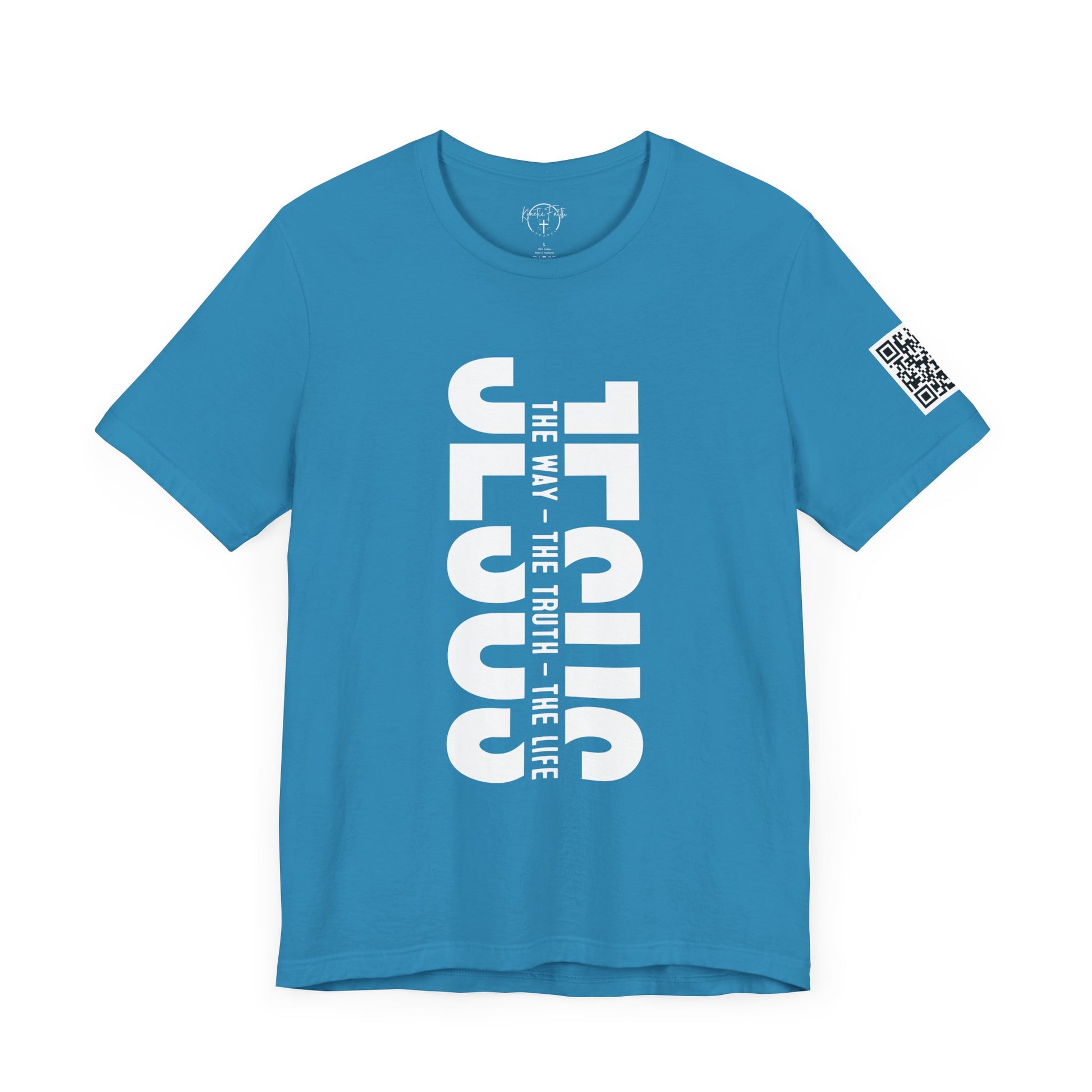 Show your faith in style with this bold and meaningful Jesus T-shirt. Made from soft, comfortable cotton, this shirt features a powerful graphic of Jesus, accompanied by an inspiring Bible verse. Whether you're at church, out with friends, or spreading love, this T-shirt serves as a reminder of His teachings and grace. Available in a variety of sizes, it's perfect for everyday wear or as a thoughtful gift for a fellow believer. Wear your faith proudly and let your shirt speak volumes about your devotion to Christ!
